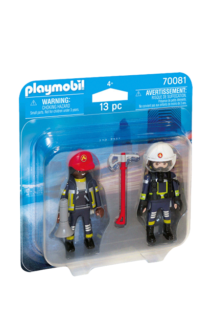 תיאור: בוא נלך! שני לוחמי האש מצוידים היטב בקסדה, גרזן ומסיכת נשימה. האם אתה מוכן לפעולה?