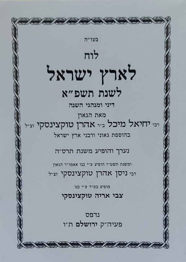 לוח טיקוצינסקי ארץ ישראל תשפו